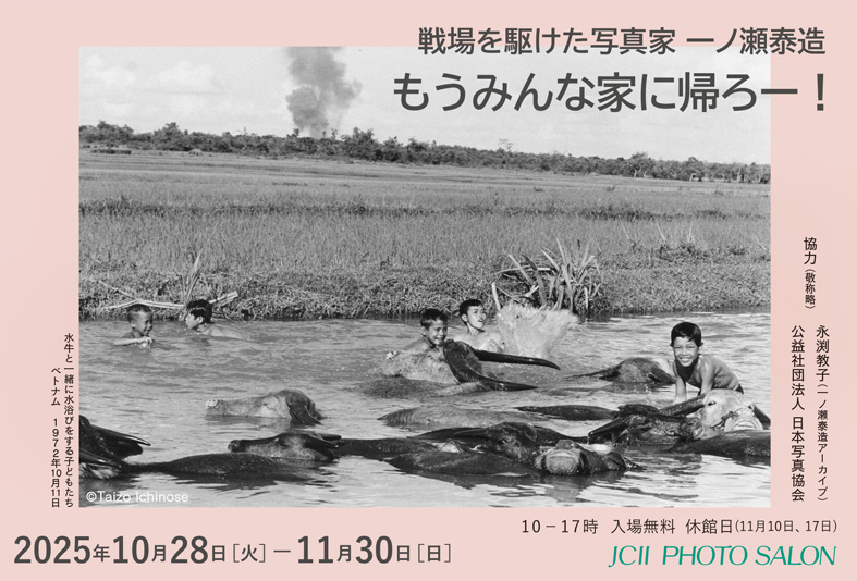 本展タイトルの「もうみんな家に帰ろー!」は、一ノ瀬がカンボジアで戦闘取材中、戦況が硬直するなかで相手側の兵士たちに向かって叫んだ言葉で(1973年9月3 日の取材原稿より)、緊迫する状況下でも人の心を和ませる言葉を発せられる一ノ瀬の人間性が表れています。本展を通して、一ノ瀬泰造が見つめた戦場と人間の姿に触れ、平和の意味を改めて考える機会となりましたら幸いです。